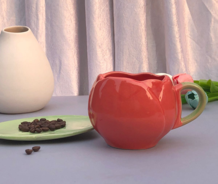 Floral-Inspired Ceramic Mug – Coral Pink