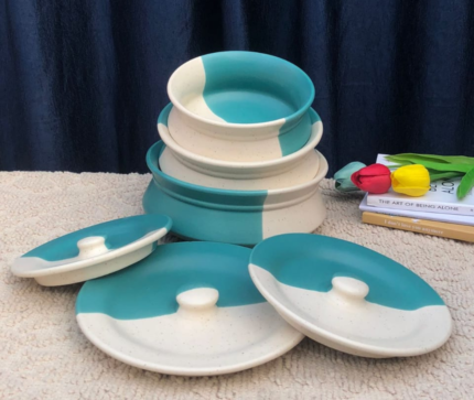 Handcrafted Two-Tone Ceramic Casserole Set with Lids – Modern Serving Bowls