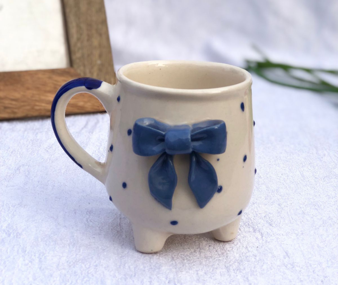 Handcrafted Bow Detail Ceramic Mug – Blue Ribbon Tea & Coffee Cup